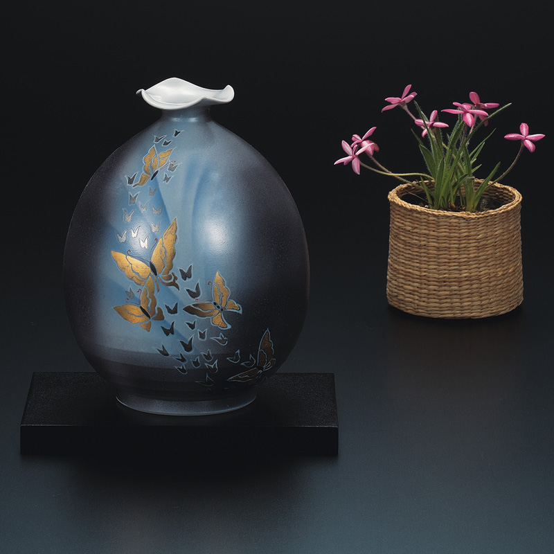 商品番号:S9-850 6号花瓶 蝶の舞 (花台付) 12000円(税別)13200円(税込) 径14cm×高さ18cm 木箱