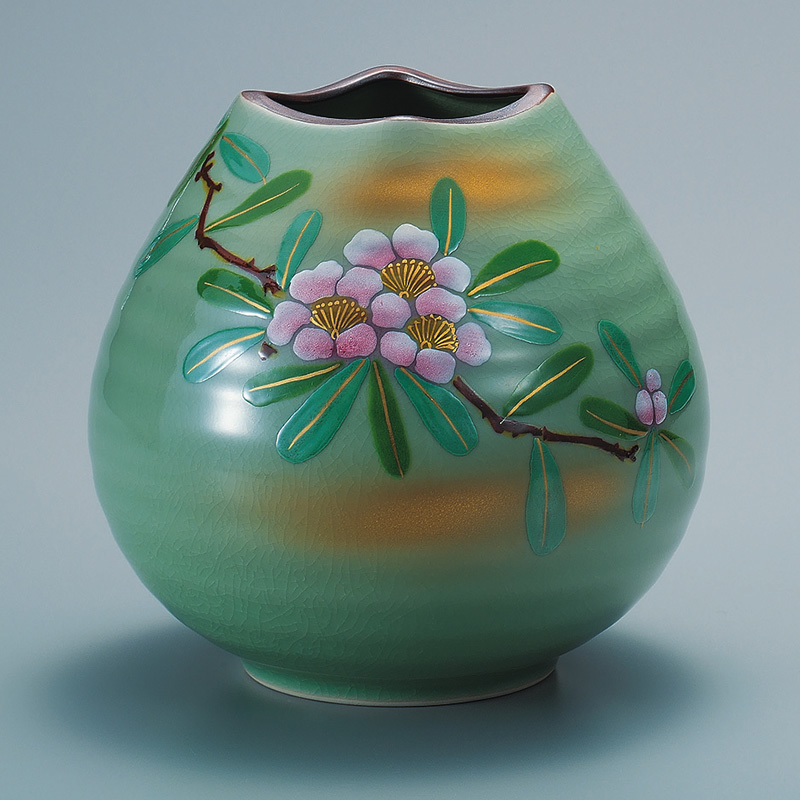 商品番号:S9-858 6.5号花瓶 本金山茶花 9000円(税別)9900円(税込) 径19cm×高さ20cm 化粧箱