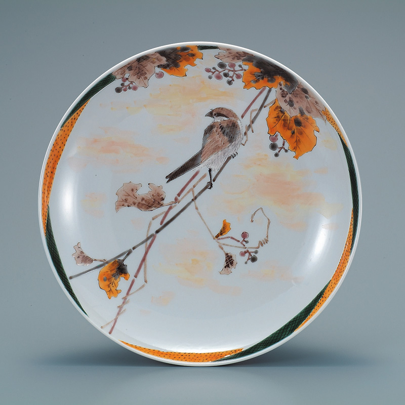 10号壁掛皿 山ぶどうに百舌の図