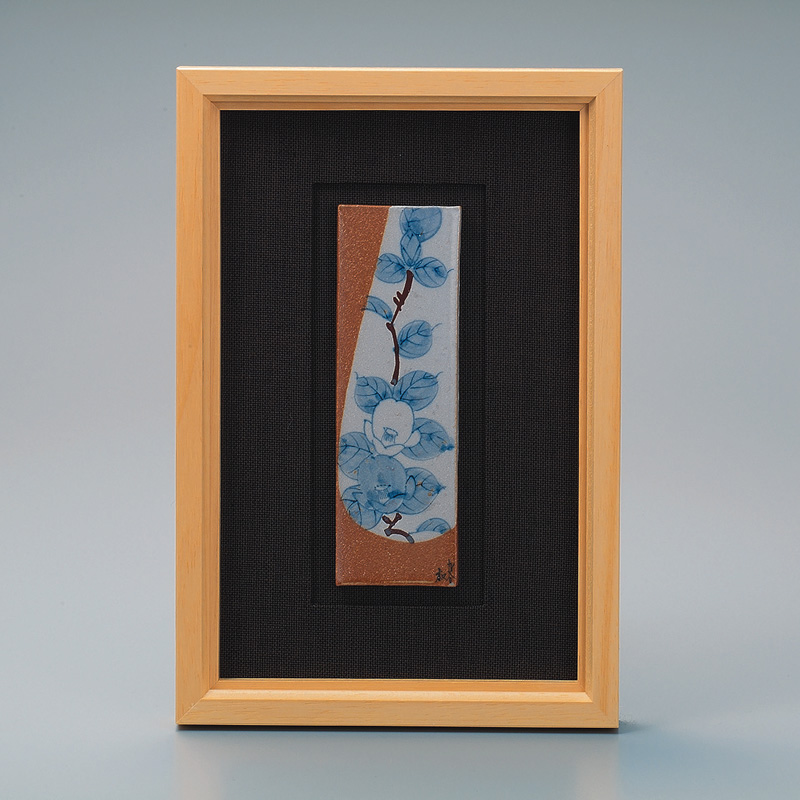 商品番号:S9-1012 陶額 染付山茶花 10000円(税別)11000円(税込) 縦35cm×横24cm 紙箱