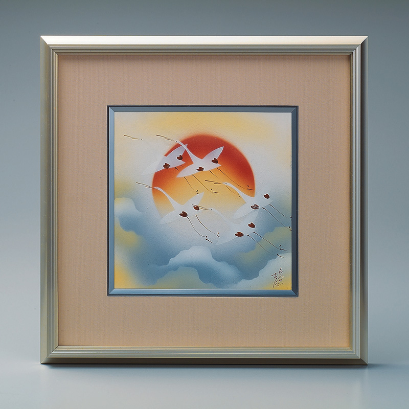 商品番号:S9-1013 陶額 日の出鶴 12000円(税別)13200円(税込) 縦34cm×横34cm 紙箱