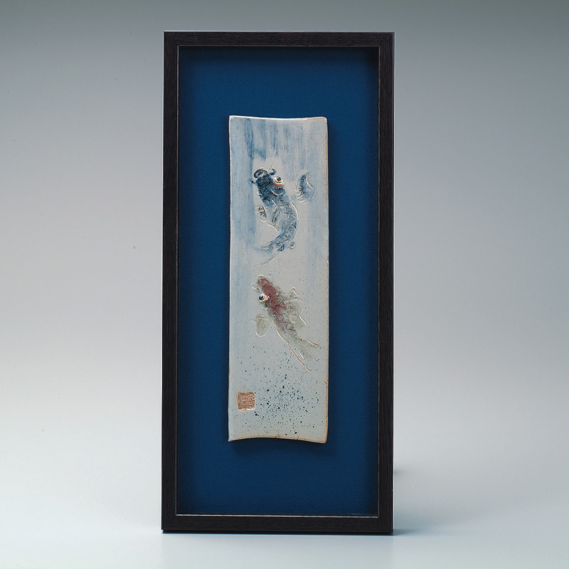 商品番号:S9-1015 陶額 鯉の滝昇り 15000円(税別)16500円(税込) 市川清鱗 縦38cm×横17cm 紙箱