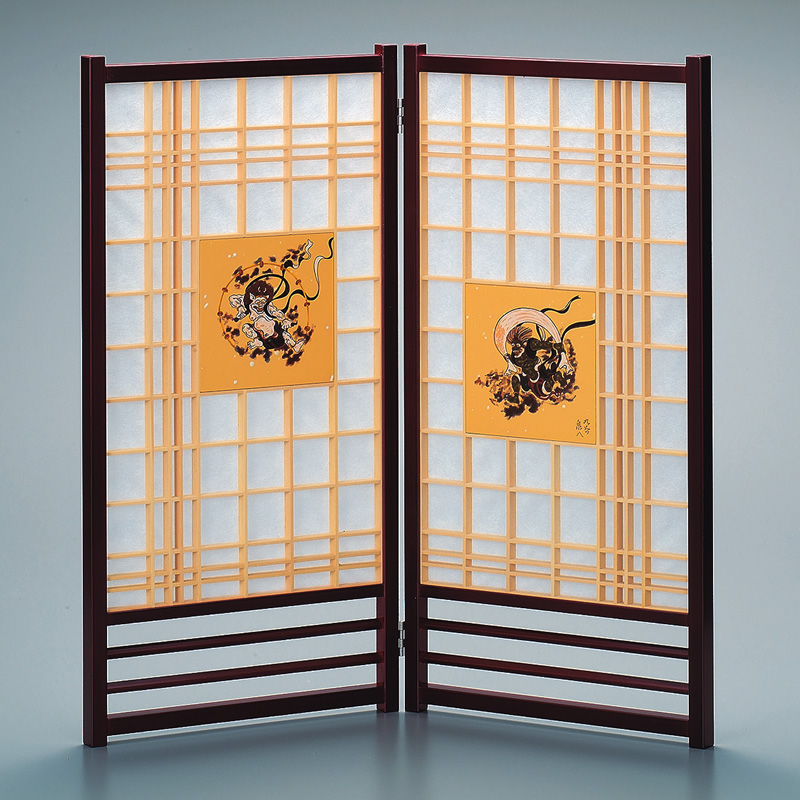 姫屏風塗 金彩風神雷神