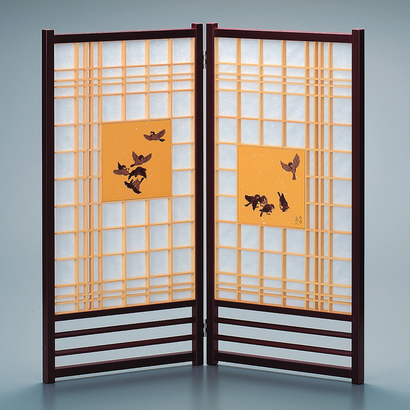 姫屏風塗 金彩すずめ