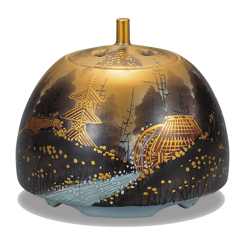 商品番号:S9-1061 3.3号香炉 本金墨山水 15000円(税別)16500円(税込) 福田昇竜 径10cm×高さ9cm 木箱