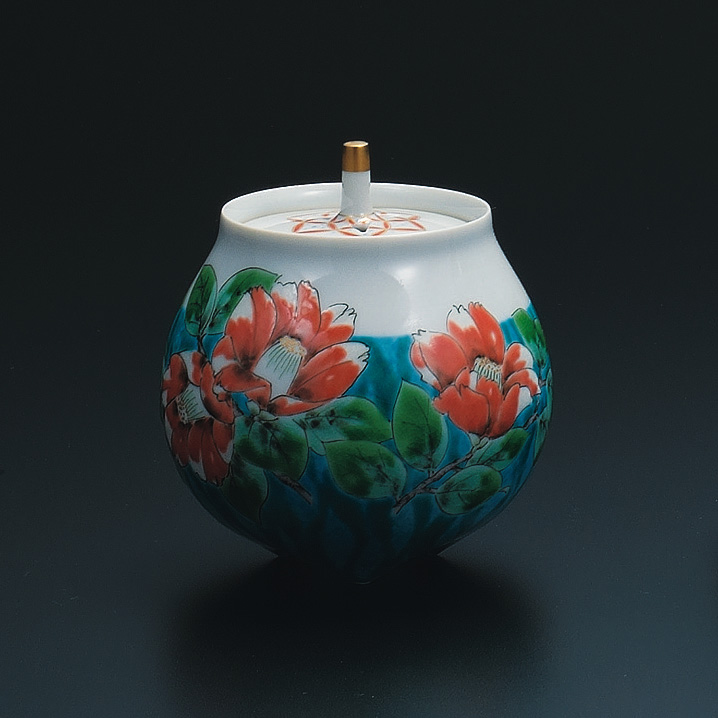 商品番号:S9-1223 4号香炉 椿文 80000円(税別)88000円(税込) 谷敷正人 径11.5cm×高さ12.5cm 桐箱入紐