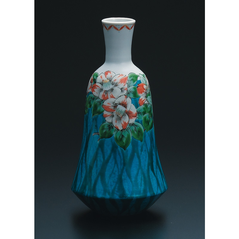 商品番号:S9-1224 8号花器 椿文 80000円(税別)88000円(税込) 谷敷正人 径12.5cm×高さ25cm 桐箱入紐
