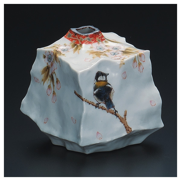商品番号:S9-1231 4.3号扁壷 春もよう 23000円(税別)25300円(税込) 中村陶志人 横10cm×高さ10cm 桐箱入紐