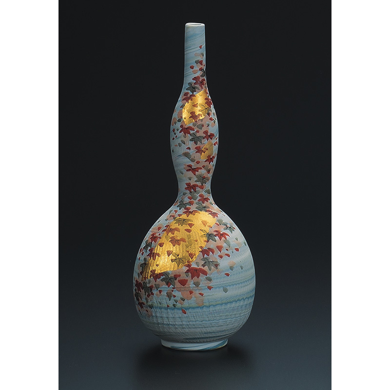 商品番号:S9-1233 飾壷 練込み金箔紅葉 30000円(税別)33000円(税込) 木原行成・福田良則 径11cm×高さ28.5cm 桐箱入紐