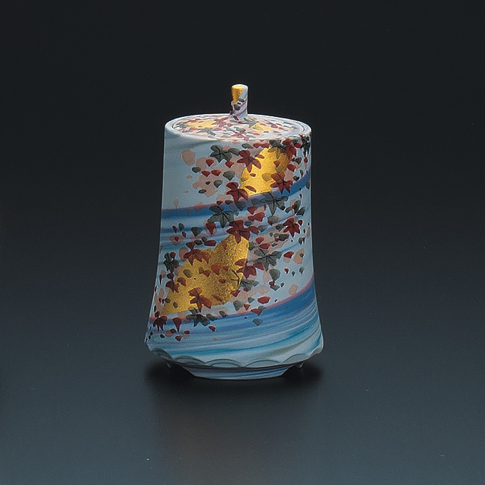 商品番号:S9-1234 香炉 練込み金箔紅葉 25000円(税別)27500円(税込) 木原行成・福田良則 径8cm×高さ13cm 桐箱入紐