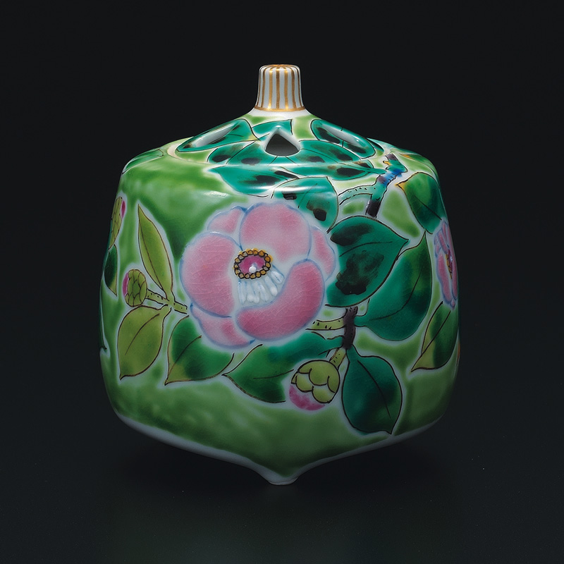 商品番号:S9-1236 3.5号香炉 ヒワ地椿 60000円(税別)66000円(税込) 川田稔 径9cm×高さ10.5cm 桐箱入紐