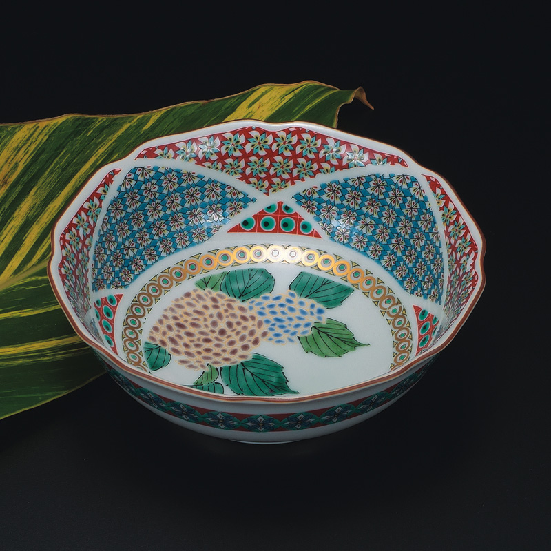 商品番号:S9-66 6号鉢 金紫陽花小紋 6000円(税別)6600円(税込) 径19cm×高さ7cm 化粧箱