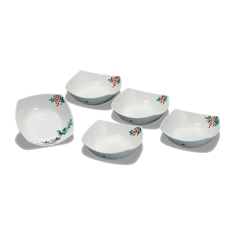 5号小鉢揃 南天に鳥
