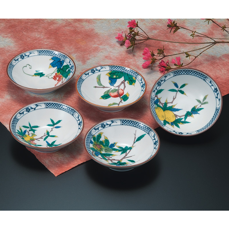 商品番号:S9-255 4.5号小鉢揃 果実絵変り 8000円(税別)8800円(税込) 径14cm×高さ4cm 木箱