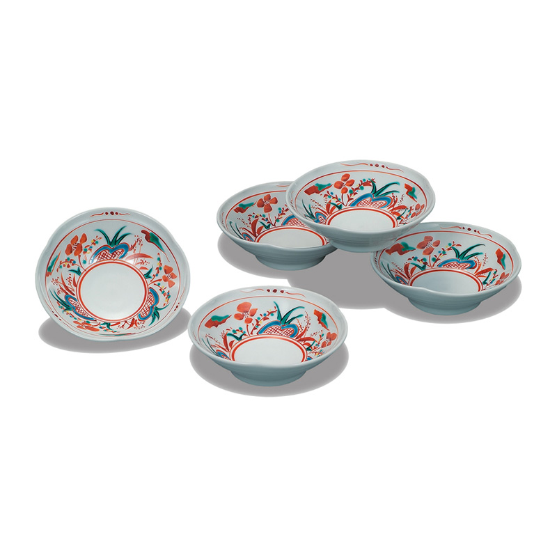 商品番号:S9-256 4号小鉢揃 花文絵変り 8000円(税別)8800円(税込) 辺13cm×高さ4.5cm 化粧箱