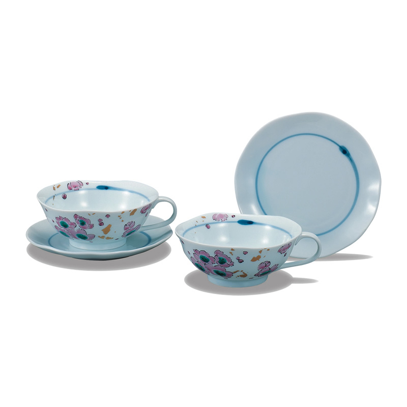 商品番号:S9-319 ペアカフェトレーセット フラワー 8500円(税別)9350円(税込) 津田幹子 径碗.8.5cm、皿22.5cm 化粧箱