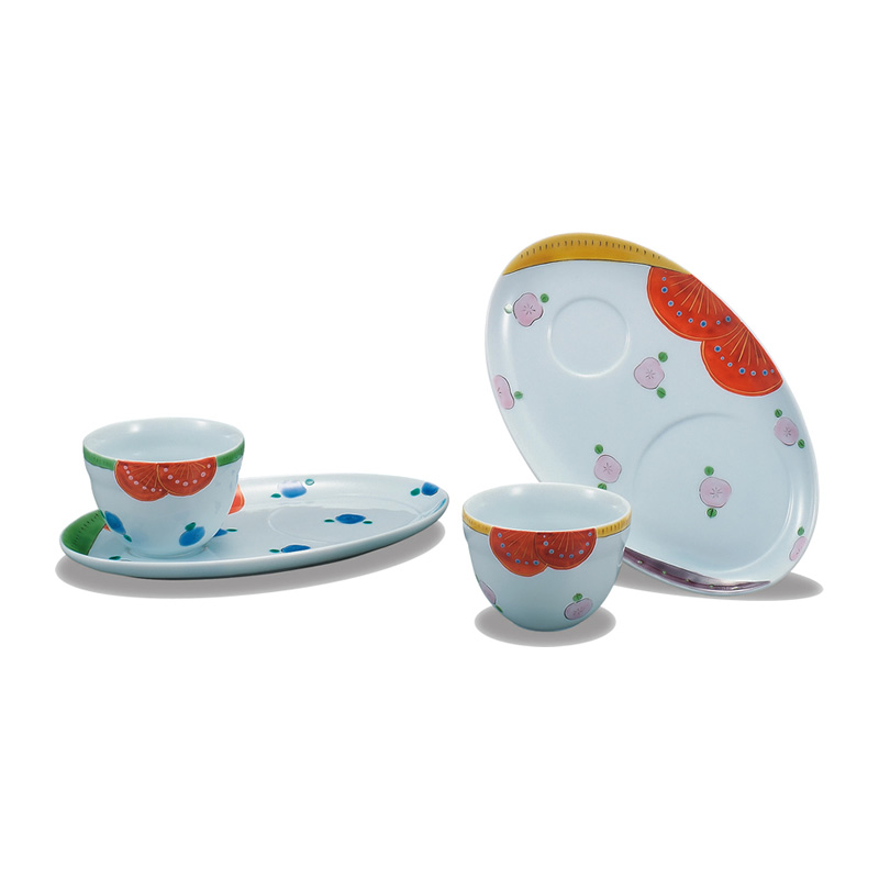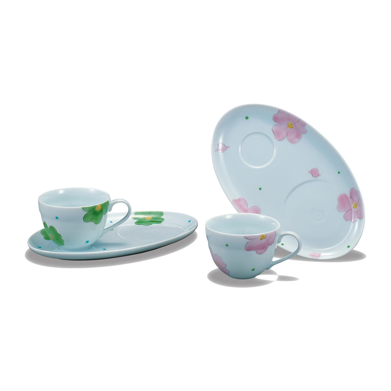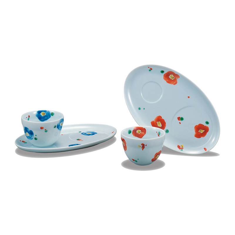 商品番号:S9-317 ペアカフェトレーセット 椿 8000円(税別)8800円(税込) 古田テルミ 径碗.8.5cm、皿22.5cm 化粧箱