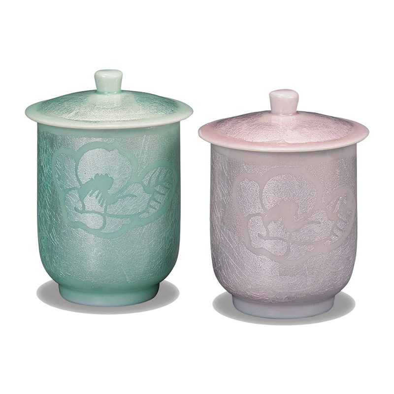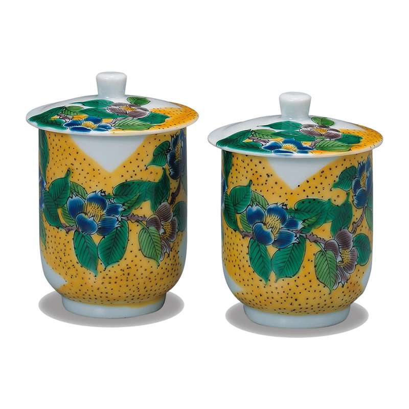 商品番号:S9-471 蓋付組湯呑 吉田屋椿 6000円(税別)6600円(税込) 大:径6.5cm×高さ10.5cm 木箱