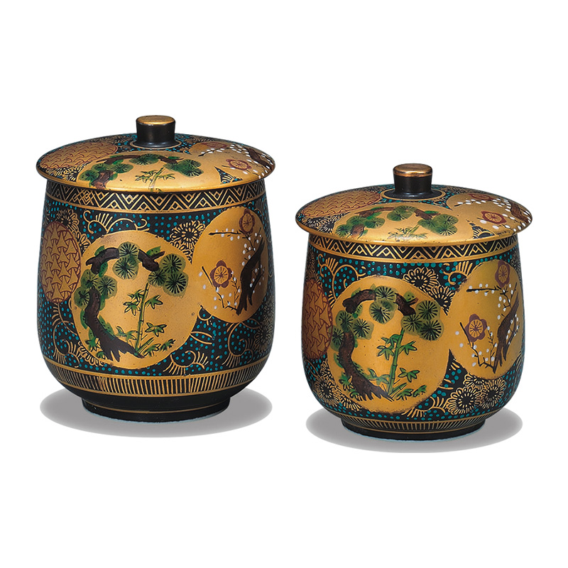 商品番号:S9-472 蓋付組湯呑 青粒松竹梅 6500円(税別)7150円(税込) 大:径7cm×高さ9.5cm 木箱