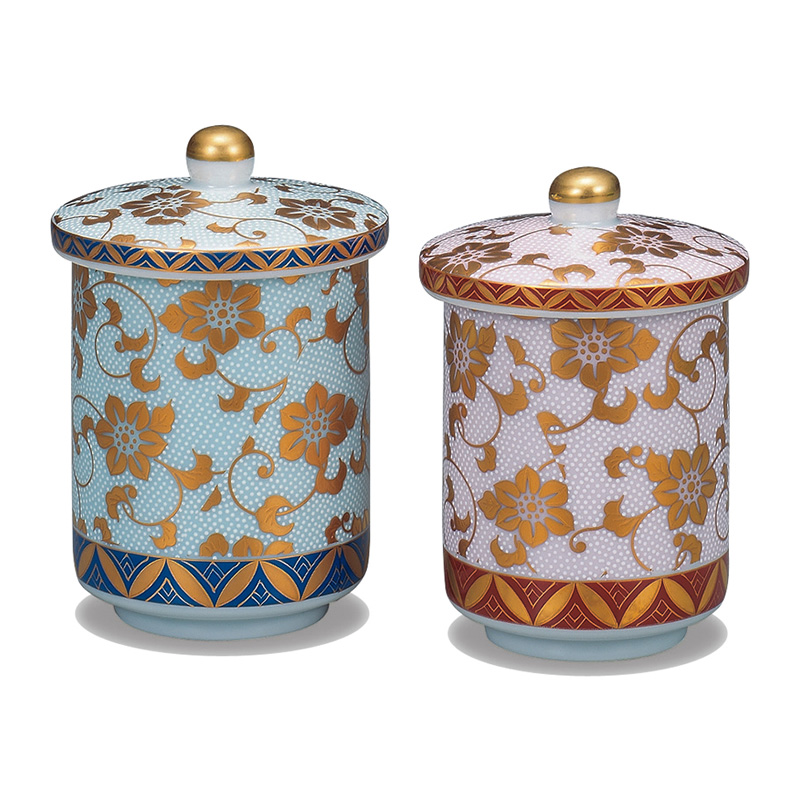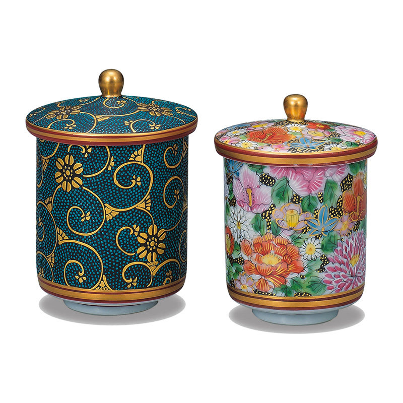 商品番号:S9-479 蓋付組湯呑 本金青粒花詰 50000円(税別)55000円(税込) 大:径7cm×高さ10.5cm 桐箱