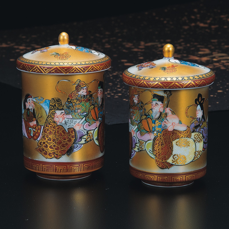 商品番号:S9-477 蓋付組湯呑 本金七福神 23000円(税別)25300円(税込) 長清宗山 大:径6.8cm×高さ11.5cm 木箱