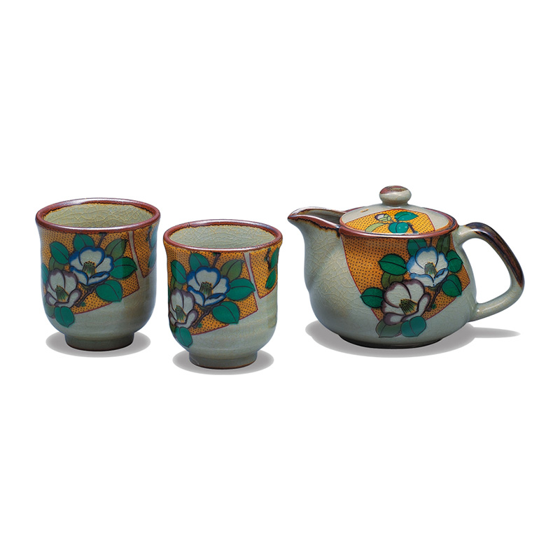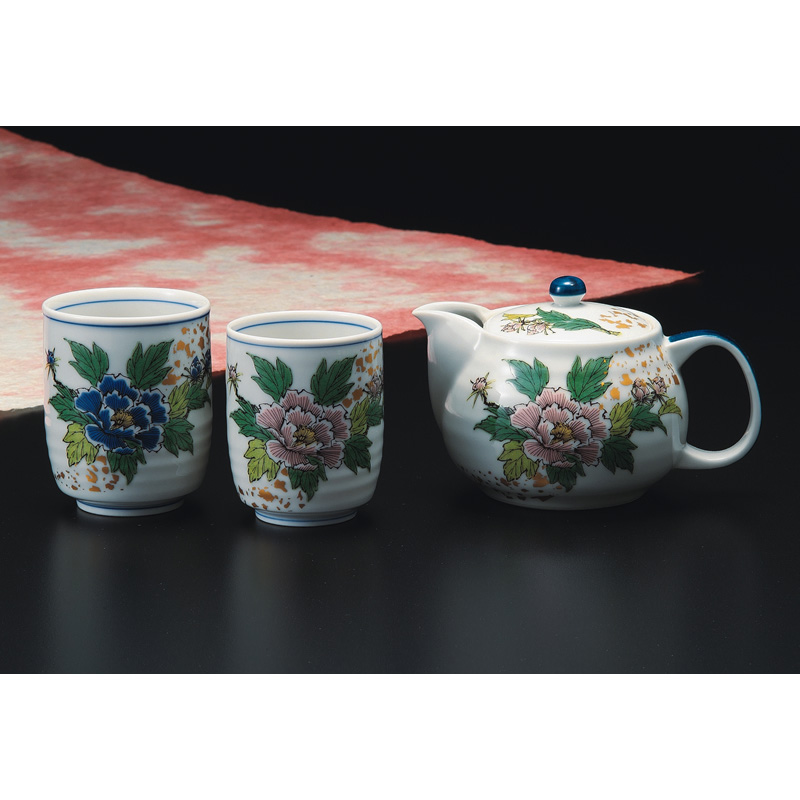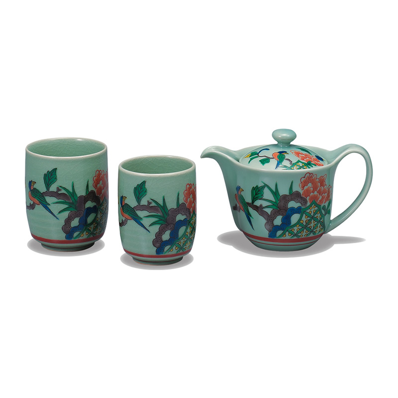 商品番号:S9-533 くつろぎ揃 古九谷花鳥 7000円(税別)7700円(税込) 大湯:径6.8cm×高さ8.5cm、ポット:210ml 化粧箱