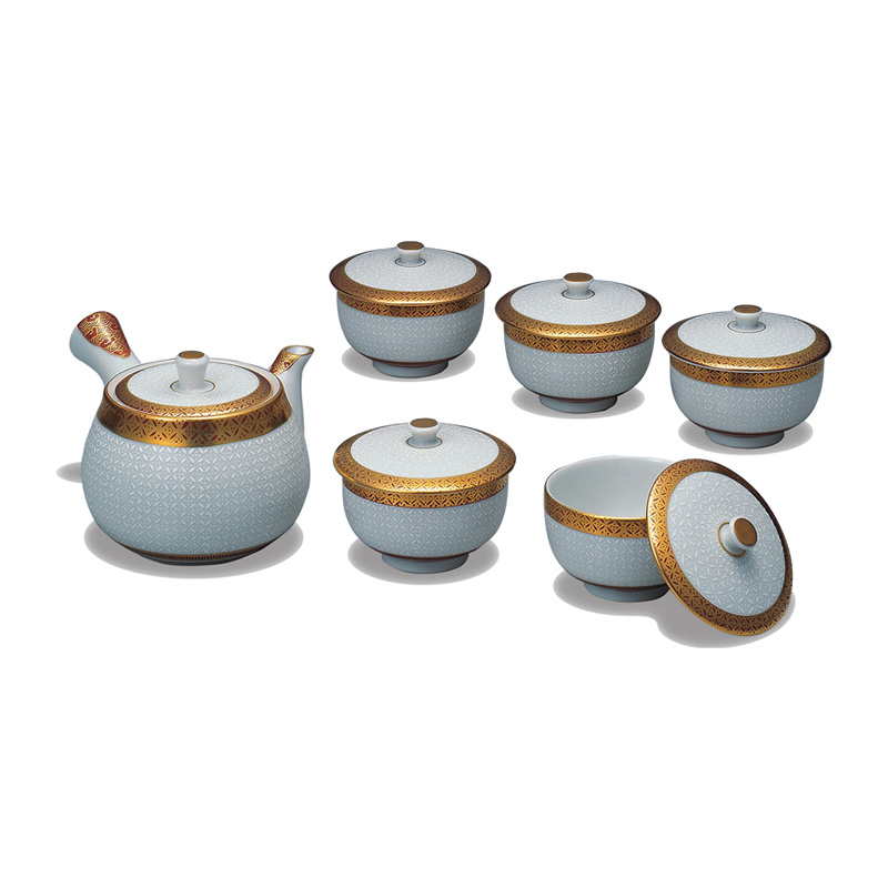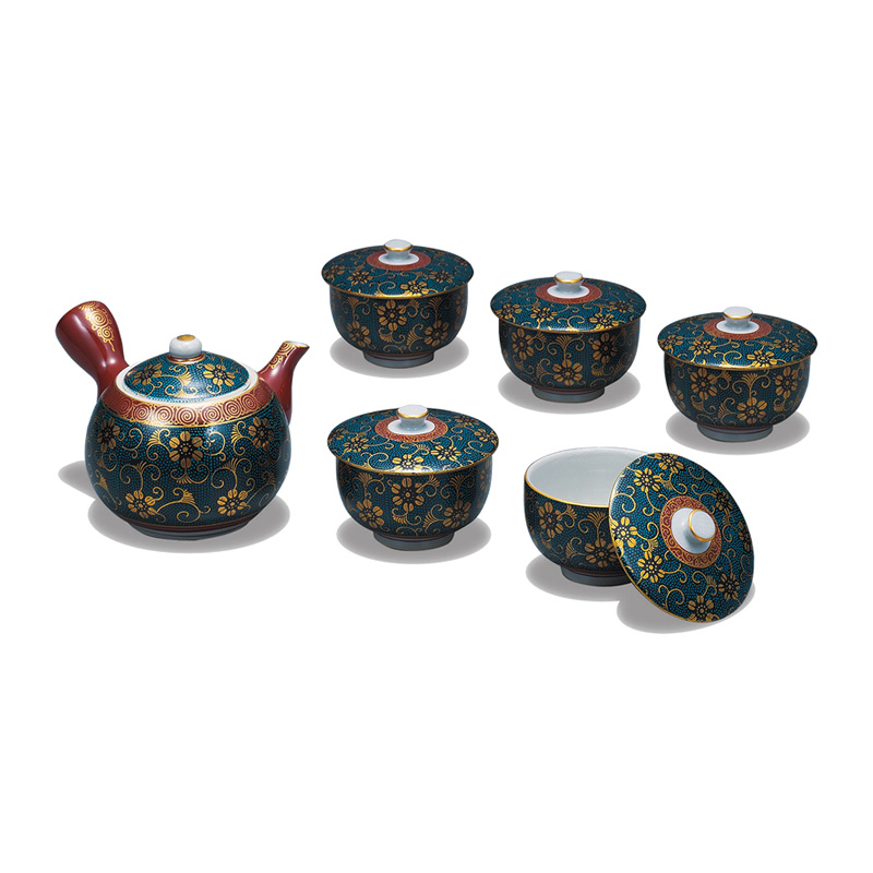 商品番号:S9-553 蓋付茶器 青粒 12000円(税別)13200円(税込) 碗:径8.4cm×高さ7.6cm 化粧箱