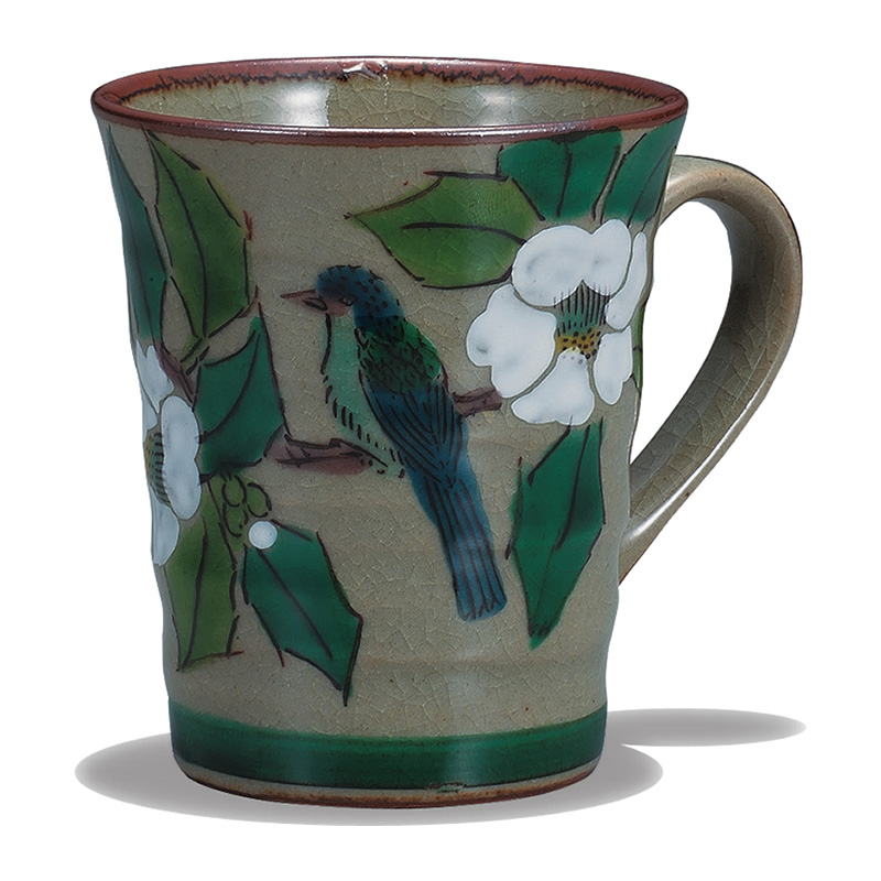 商品番号:S9-601 マグカップ 白椿に鳥 2200円(税別)2420円(税込) 径8cm×高さ9.3cm 紙箱