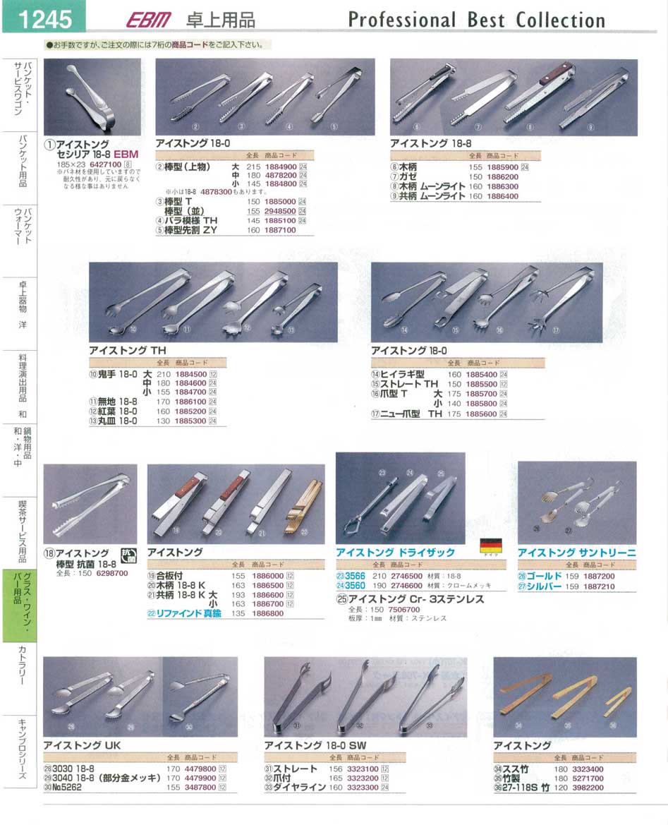 商品番号2948500 18-0 アイストング 棒型(並)(90) 価格270(税別)