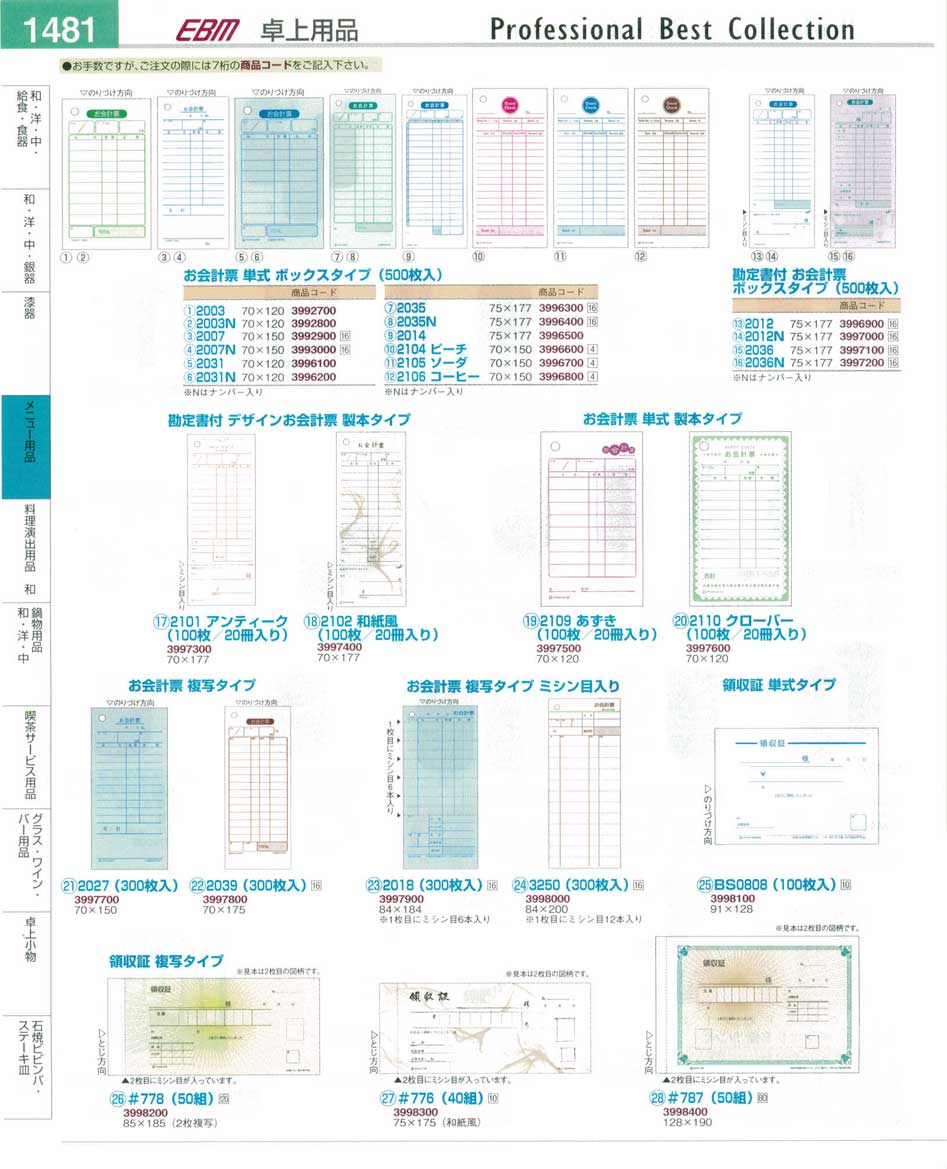 お会計票・領収証 プロフェッショナルベストコレクション14−2 EBM