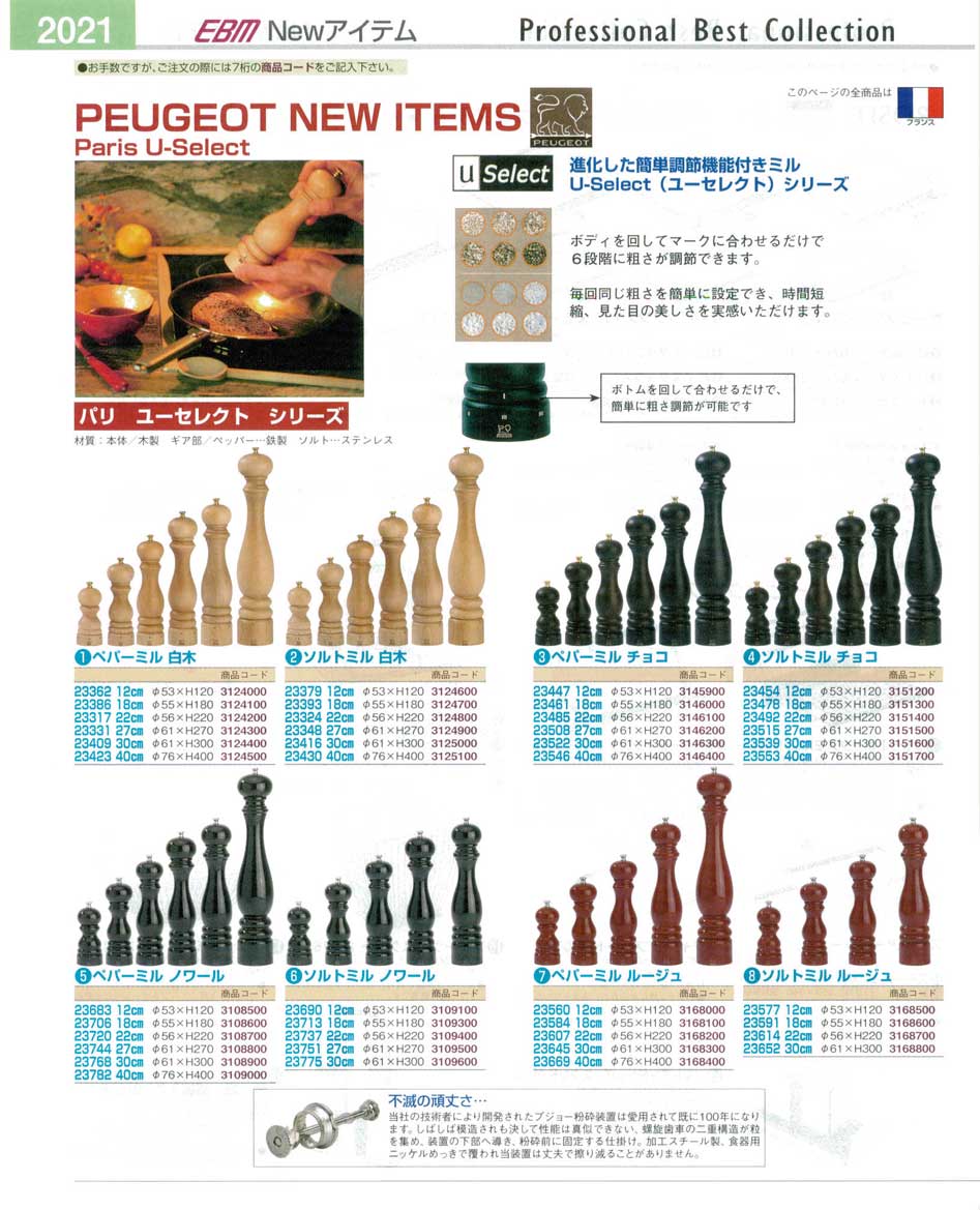 プジョー・パリユーセレクトシリーズ・ペパーミル プロフェッショナルベストコレクション14−2 EBM−2021ページ:パンフレットを見るには、スクリプト対応ブラウザが必要です。