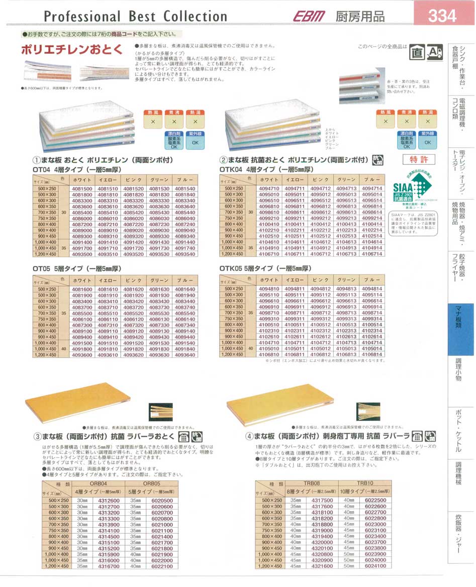 まな板・ポリエチレンおとく プロフェッショナルベストコレクション14−2 EBM−334ページ:パンフレットを見るには、スクリプト対応ブラウザが必要です。