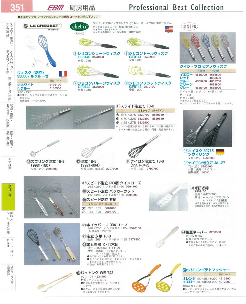 ウィスク・ルクルーゼ・スピード泡立 プロフェッショナルベストコレクション14−2 EBM−351ページ:パンフレットを見るには、スクリプト対応ブラウザが必要です。