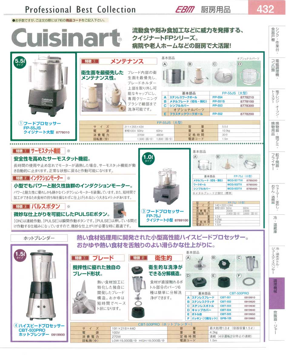 クイジナート・フードプロセッサー・ホットブレンダー プロフェッショナルベストコレクション14−2 EBM−432ページ:パンフレットを見るには、スクリプト対応ブラウザが必要です。