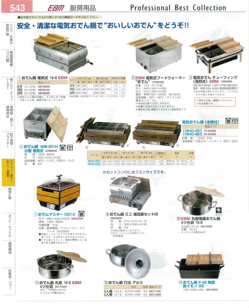 おでん鍋 プロフェッショナルベストコレクション14−2 EBM−543ページ:パンフレットを見るには、スクリプト対応ブラウザが必要です。