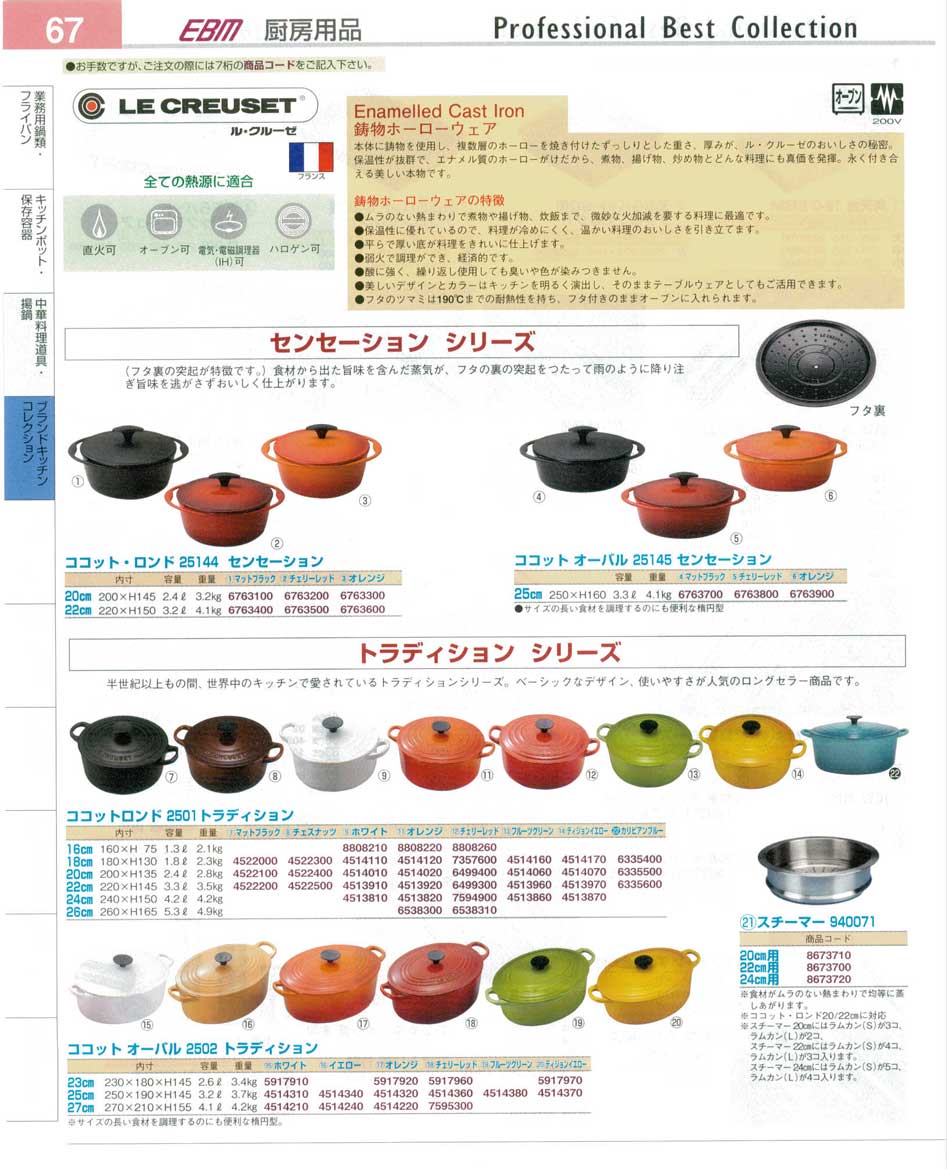 ル・クルーゼ・鋳物ホーローウェア プロフェッショナルベストコレクション14−2 EBM−67ページ:パンフレットを見るには、スクリプト対応ブラウザが必要です。