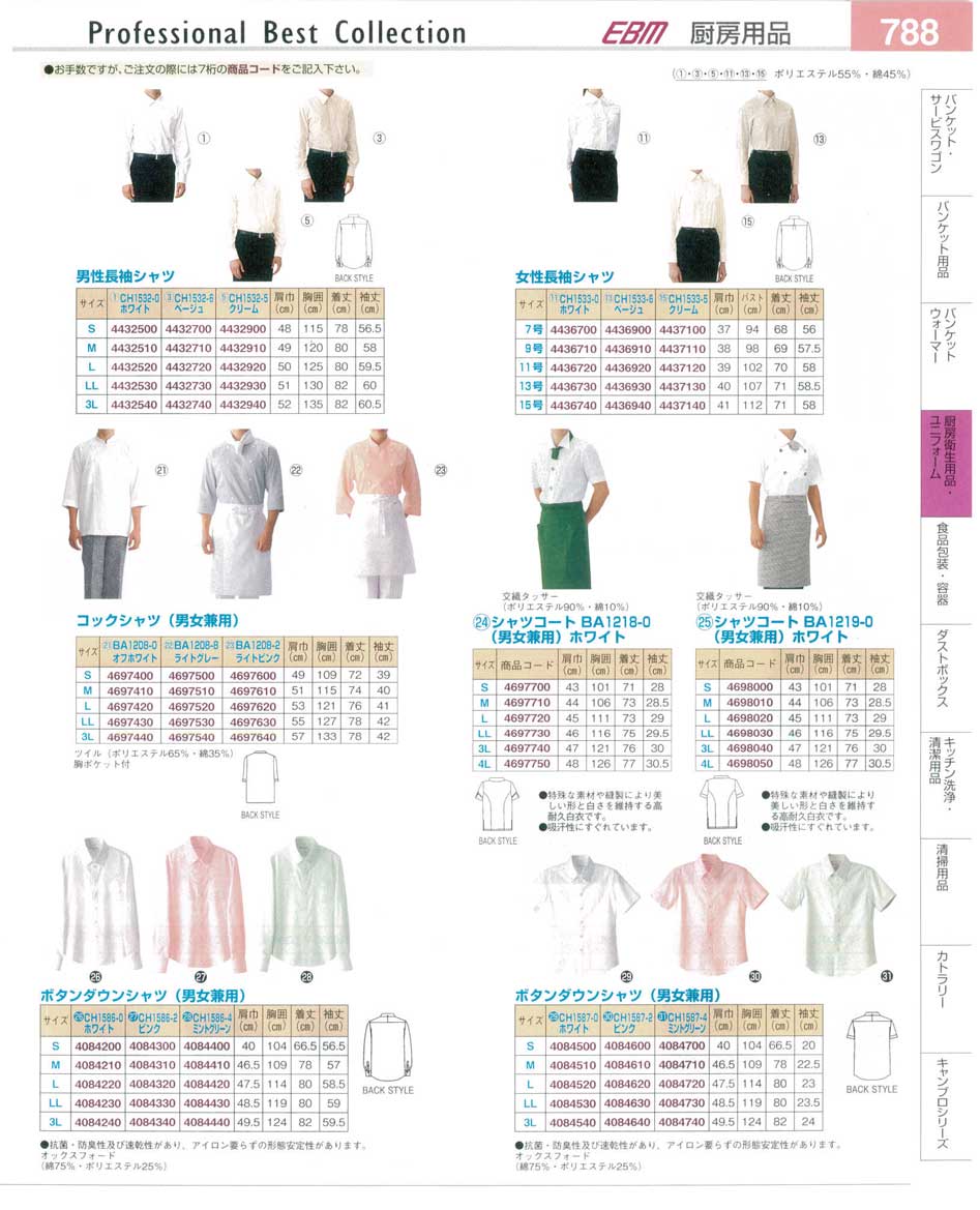 シャツ・コックシャツ・シャツコート プロフェッショナルベストコレクション14−2 EBM−788ページ:パンフレットを見るには、スクリプト対応ブラウザが必要です。