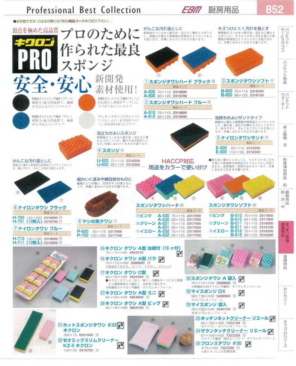 キクロンプロ・スポンジタワシ・ナイロンタワシ プロフェッショナルベストコレクション14−2 EBM−852ページ:パンフレットを見るには、スクリプト対応ブラウザが必要です。