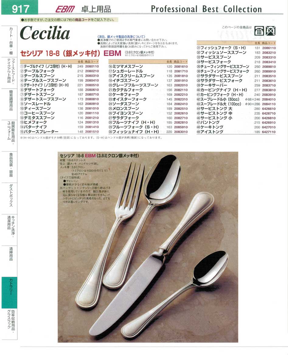 カトラリー・セシリア18-8(銀メッキ付)EBM プロフェッショナルベストコレクション14−2 EBM−917ページ:パンフレットを見るには、スクリプト対応ブラウザが必要です。