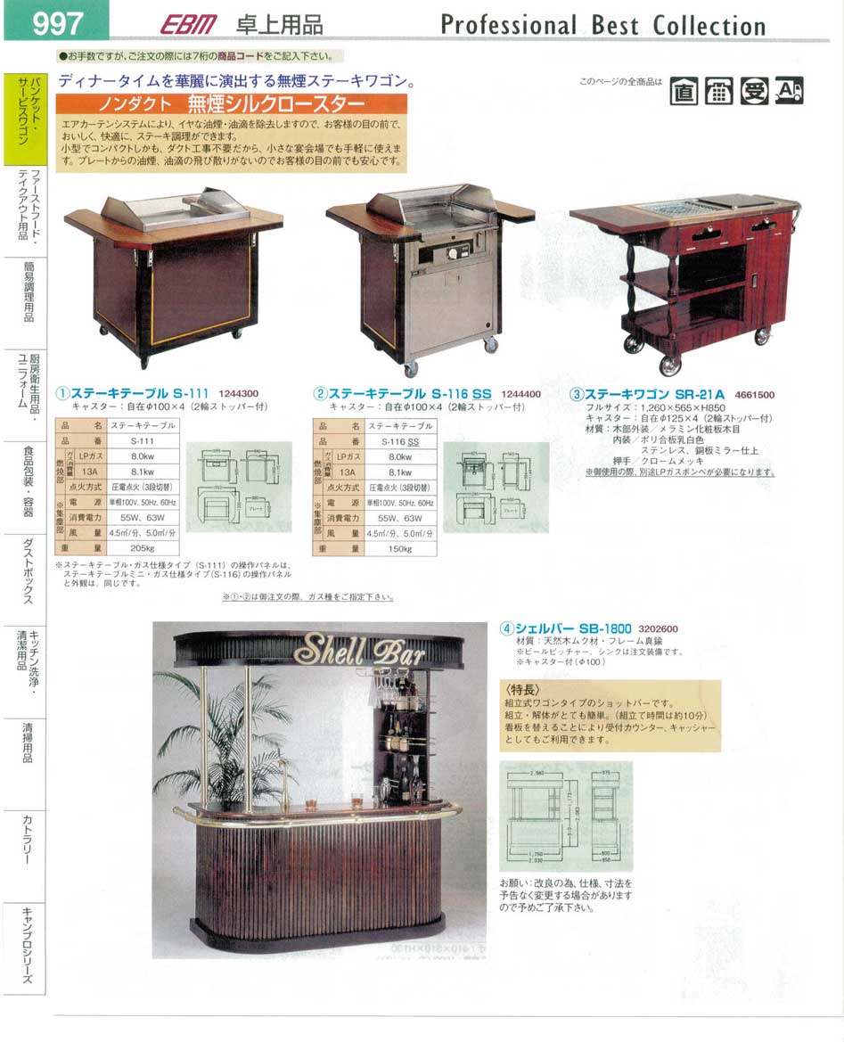 ノンダクト無煙シルクロースター・ステーキワゴン・シェルバー プロフェッショナルベストコレクション14−2 EBM−997ページ:パンフレットを見るには、スクリプト対応ブラウザが必要です。