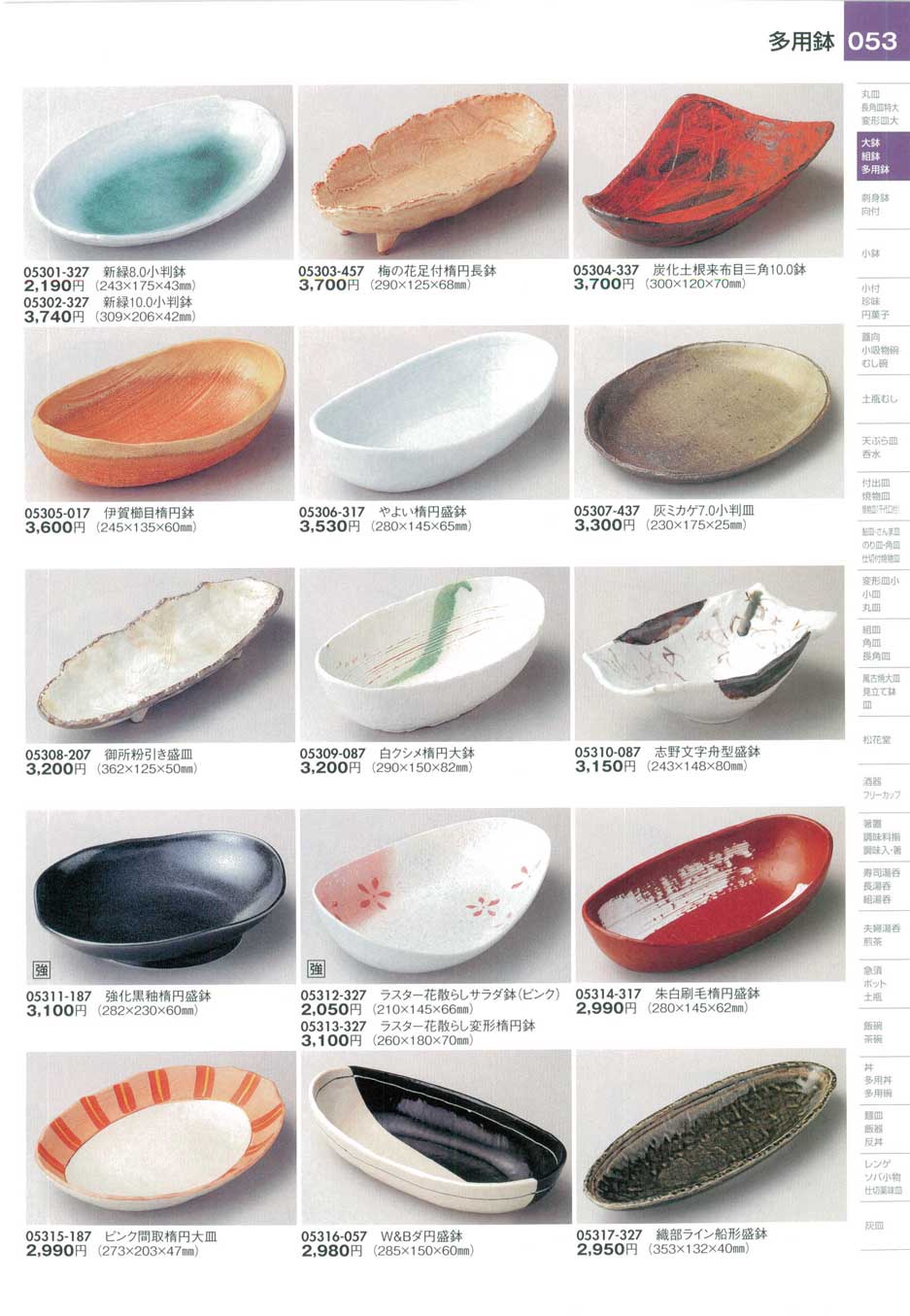 ・05306-317 やよい楕円盛鉢 (280×145×65mm)