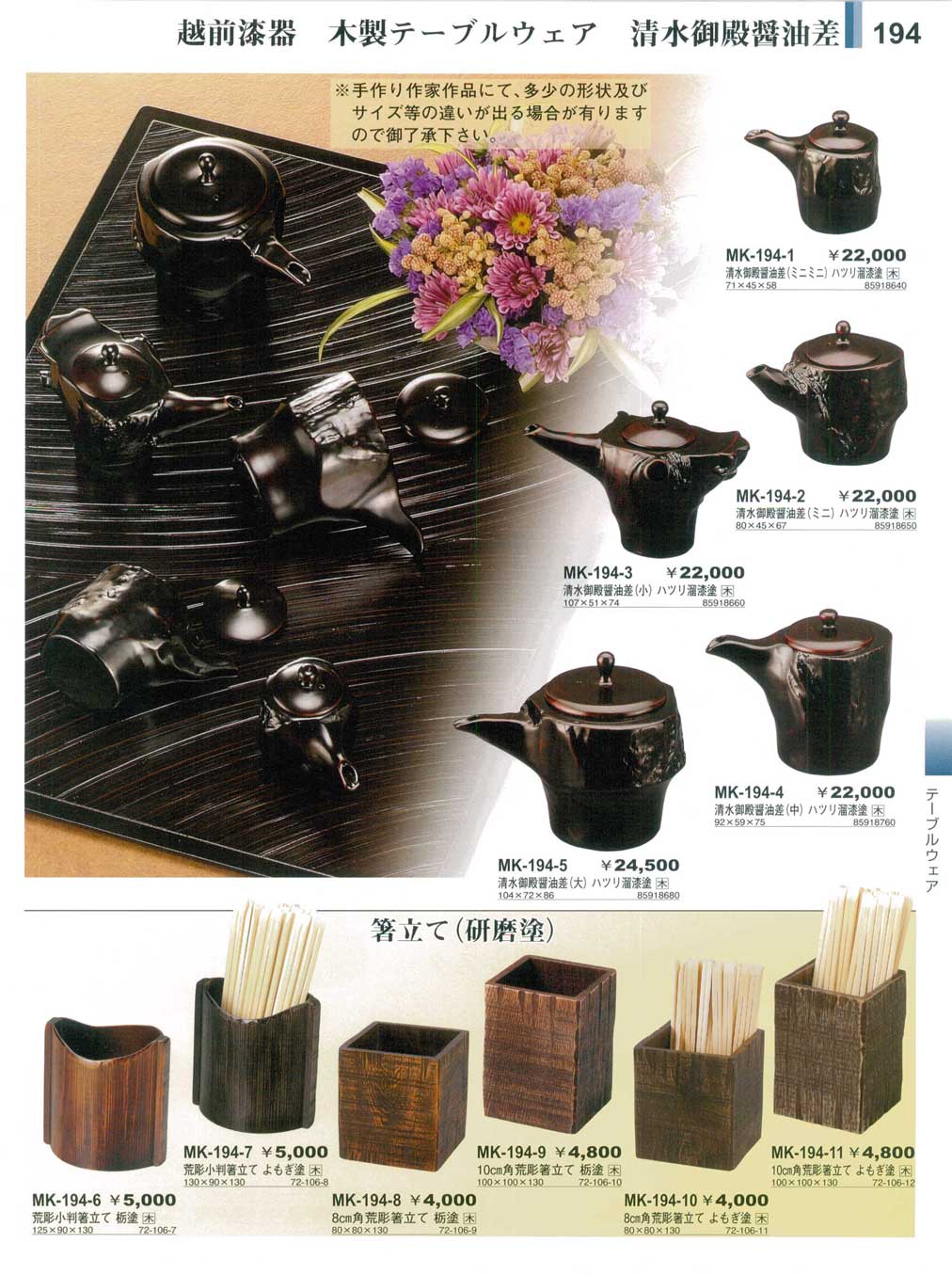 越前漆器・木製テーブルウェアやすらぎ越前漆器1・木製懐石−194ページ:パンフレットを見るには、スクリプト対応ブラウザが必要です。
