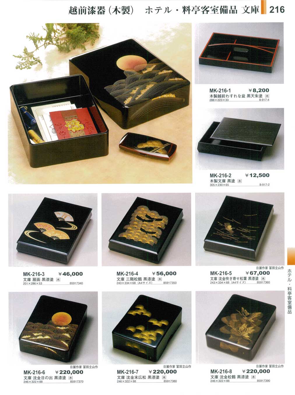 越前漆器(木製)・ホテル・料亭客室備品・文庫やすらぎ越前漆器1・木製懐石−216ページ:パンフレットを見るには、スクリプト対応ブラウザが必要です。