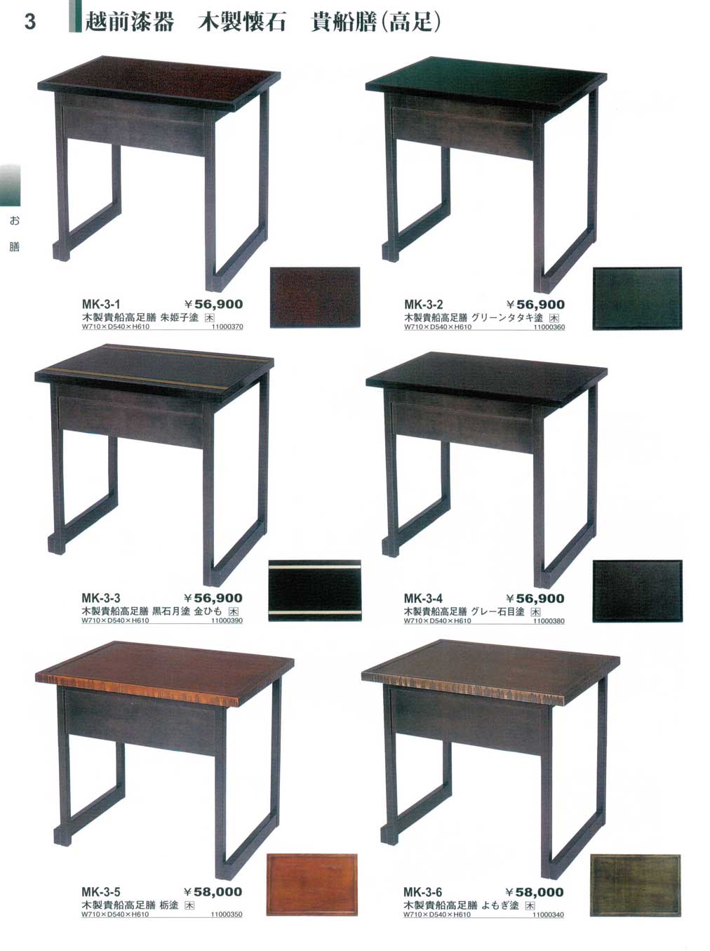 越前漆器・木製懐石・貴船膳(高足)やすらぎ越前漆器1・木製懐石−3ページ:パンフレットを見るには、スクリプト対応ブラウザが必要です。