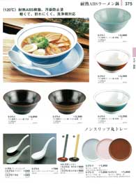 375ページ 耐熱ABSラーメン鉢・ノンスリップ丸トレー・レンゲ・しゃもじ |