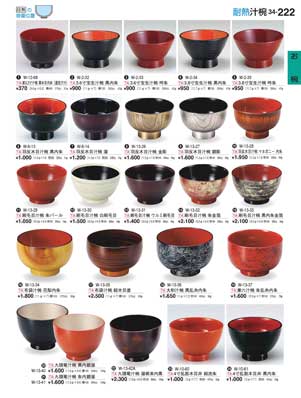 222ページ 耐熱汁椀Heat-resistant Soup Bowls |