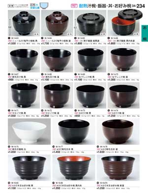 234ページ 耐熱汁椀・飯器・丼・お好み椀Bowls |