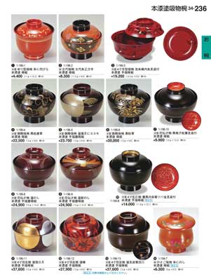 236ページ 本漆塗吸物椀 Lacquered Soup Bowls |