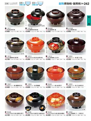 242ページ 耐熱煮物椀・雑煮椀Heat-resistant Lidded Bowls |