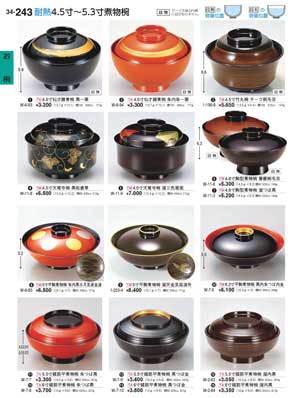 243ページ 耐熱4.5寸から5.3寸煮物椀Heat-resistant Lidded Bowls |